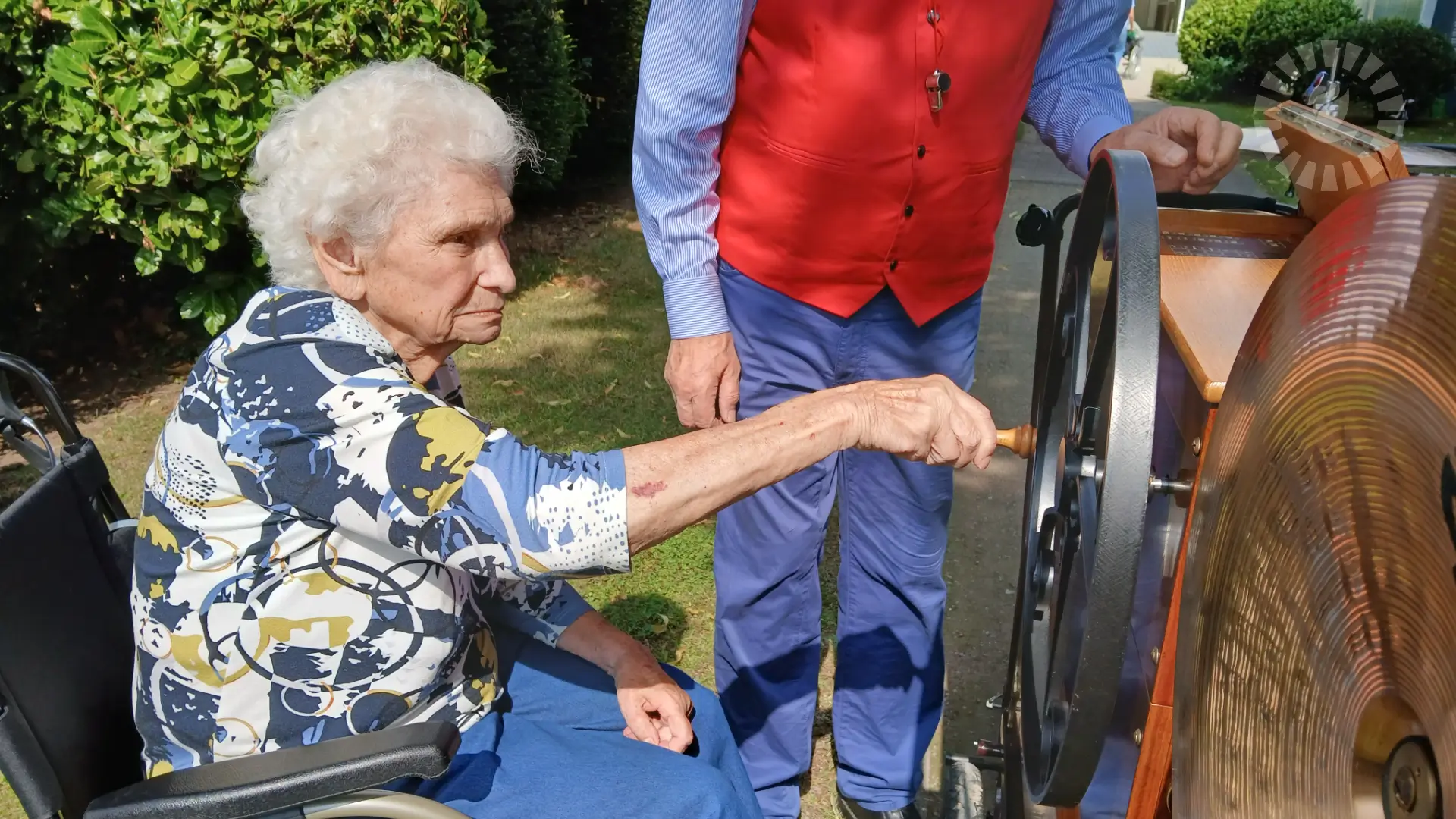 Für die musikalische Untermalung sorgte ein Drehorgelspieler, der mit seiner nostalgischen Musik für eine besondere Atmosphäre sorgte. Die vertrauten Klänge der Drehorgel weckten Erinnerungen und luden zum Mitsummen ein. Besonders schön war, dass einige Bewohner sogar selbst die Drehorgel ausprobieren durften – ein echtes Highlight, das für viel Freude und Staunen sorgte.