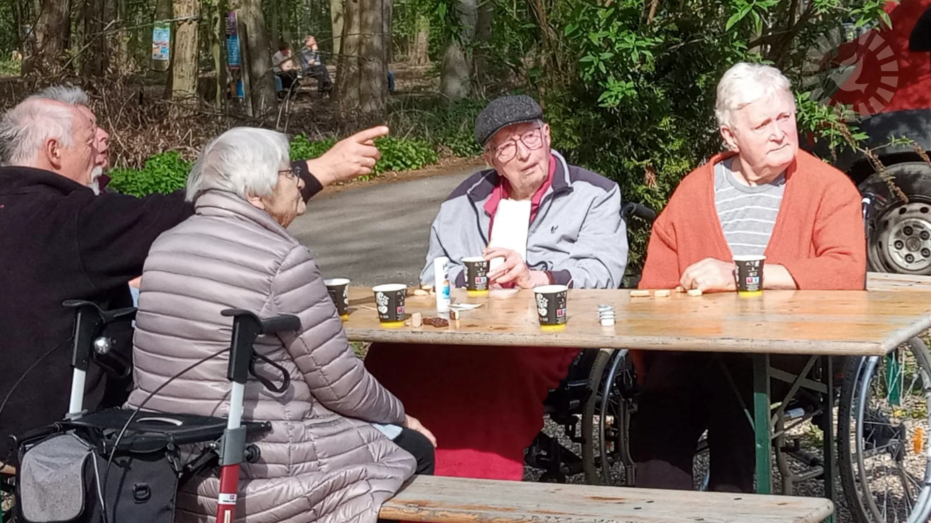 Nach dem Besuch der Ausstellung ließ die Gruppe den Nachmittag entspannt vor dem Gasometer ausklingen. Bei herzhaften Speisen wurde weiter gesprochen, gelacht und der Tag gemeinsam reflektiert.